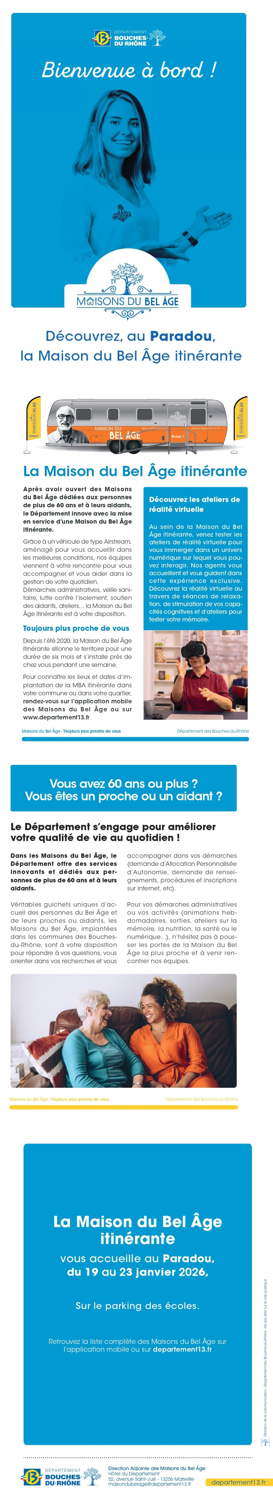 Découvrez la Maison du Bel Âge itinérante, toujours plus proche de vous, qui fait étape au Paradou du 19 au 23 janvier 2026