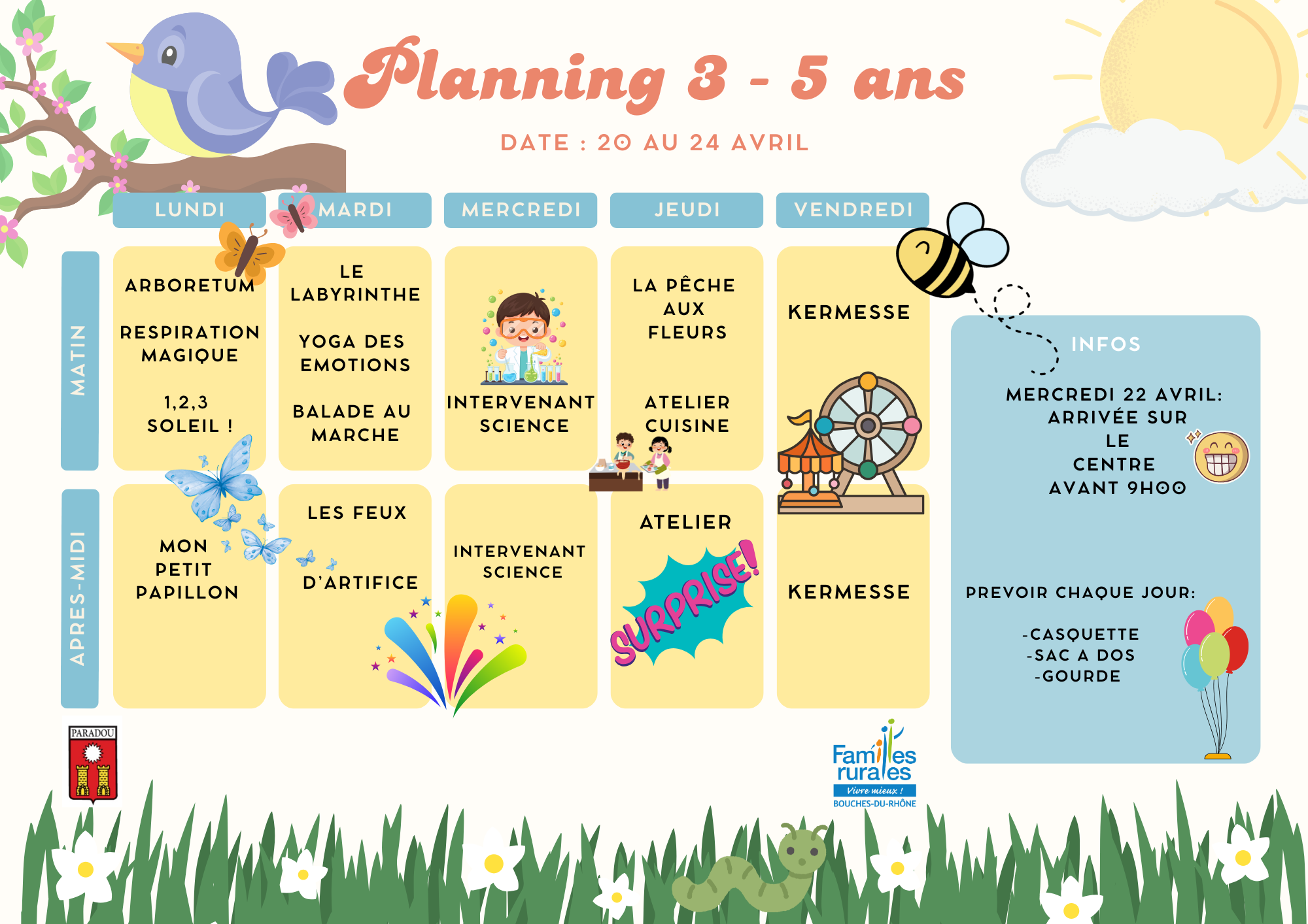 Plannings des vacances d'avril 2026