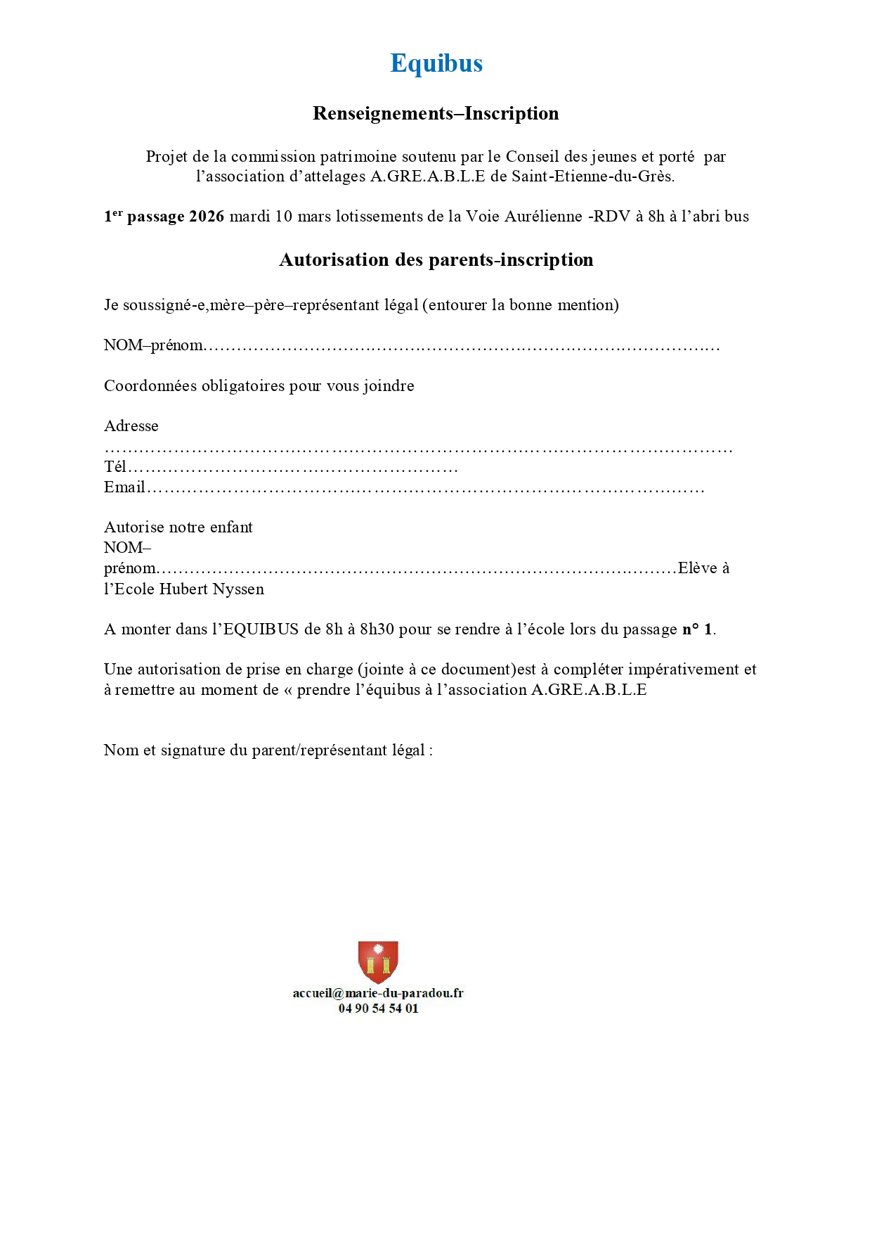 Equibus au PARADOU - Transport le 10 Mars
