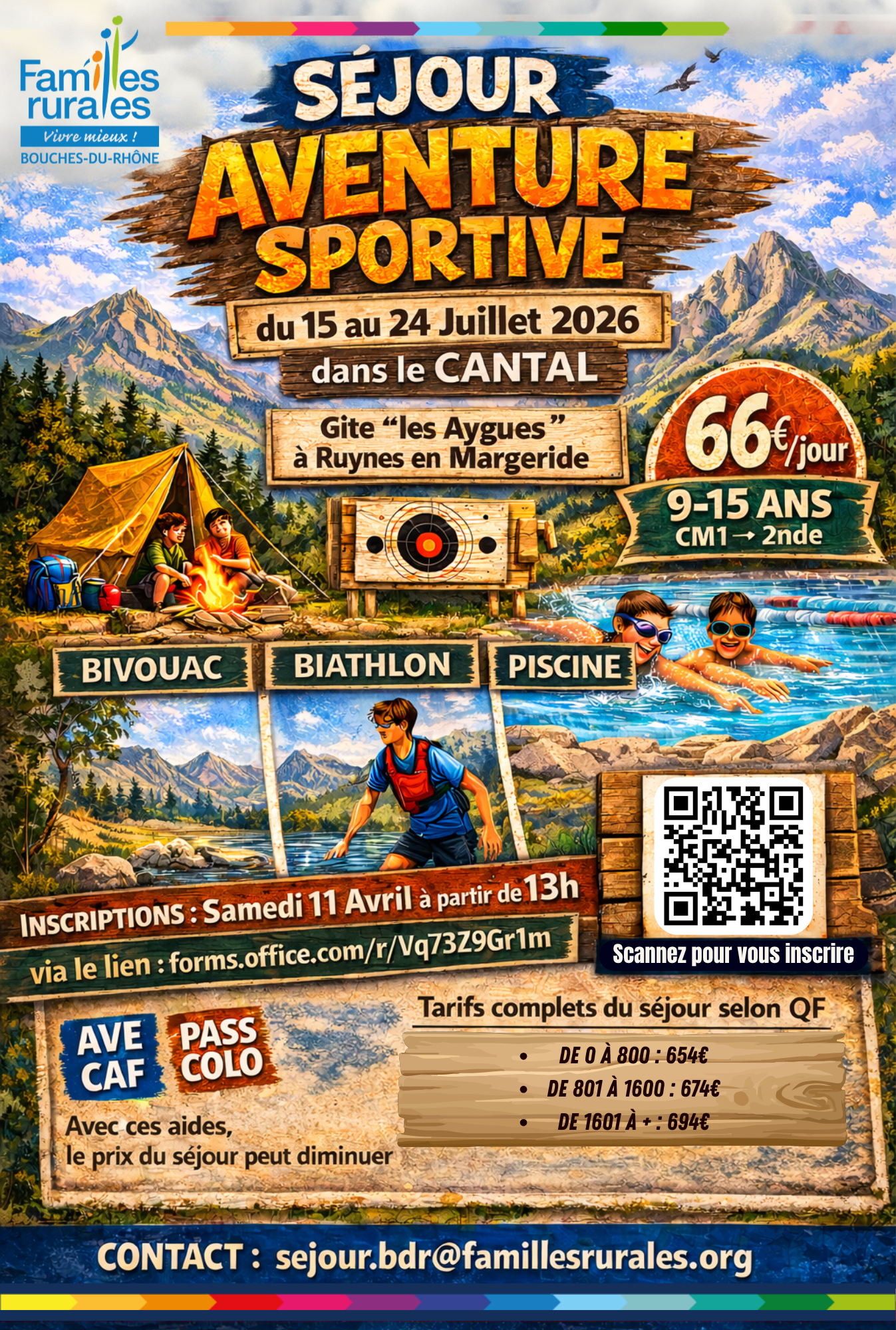 Un stage Aventure est organisé en avril 2026 pour les jeunes de 8 à 16 ans.
