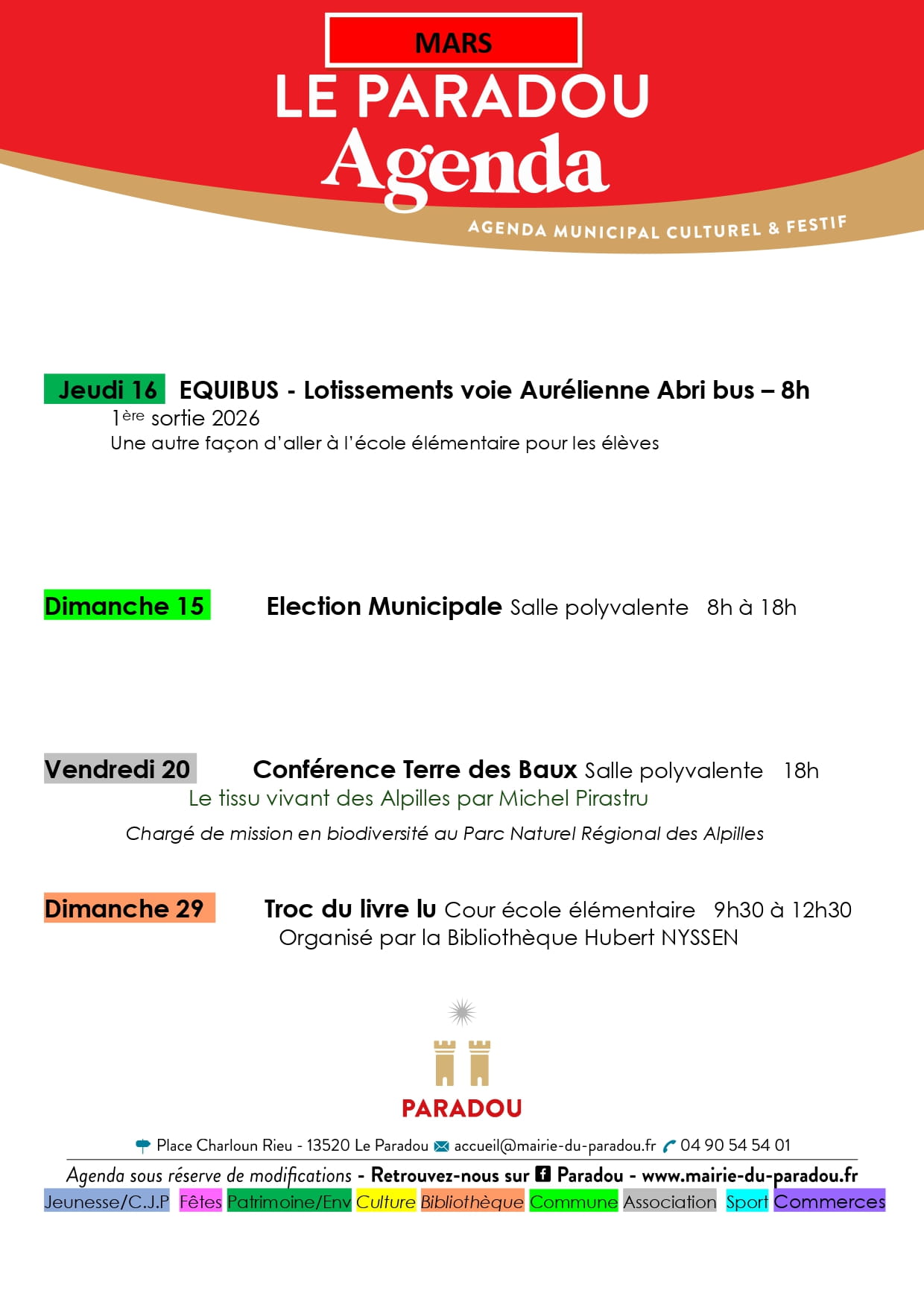 (*) Réservation obligatoire à l'accueil de la mairie (04 90 54 54 01)