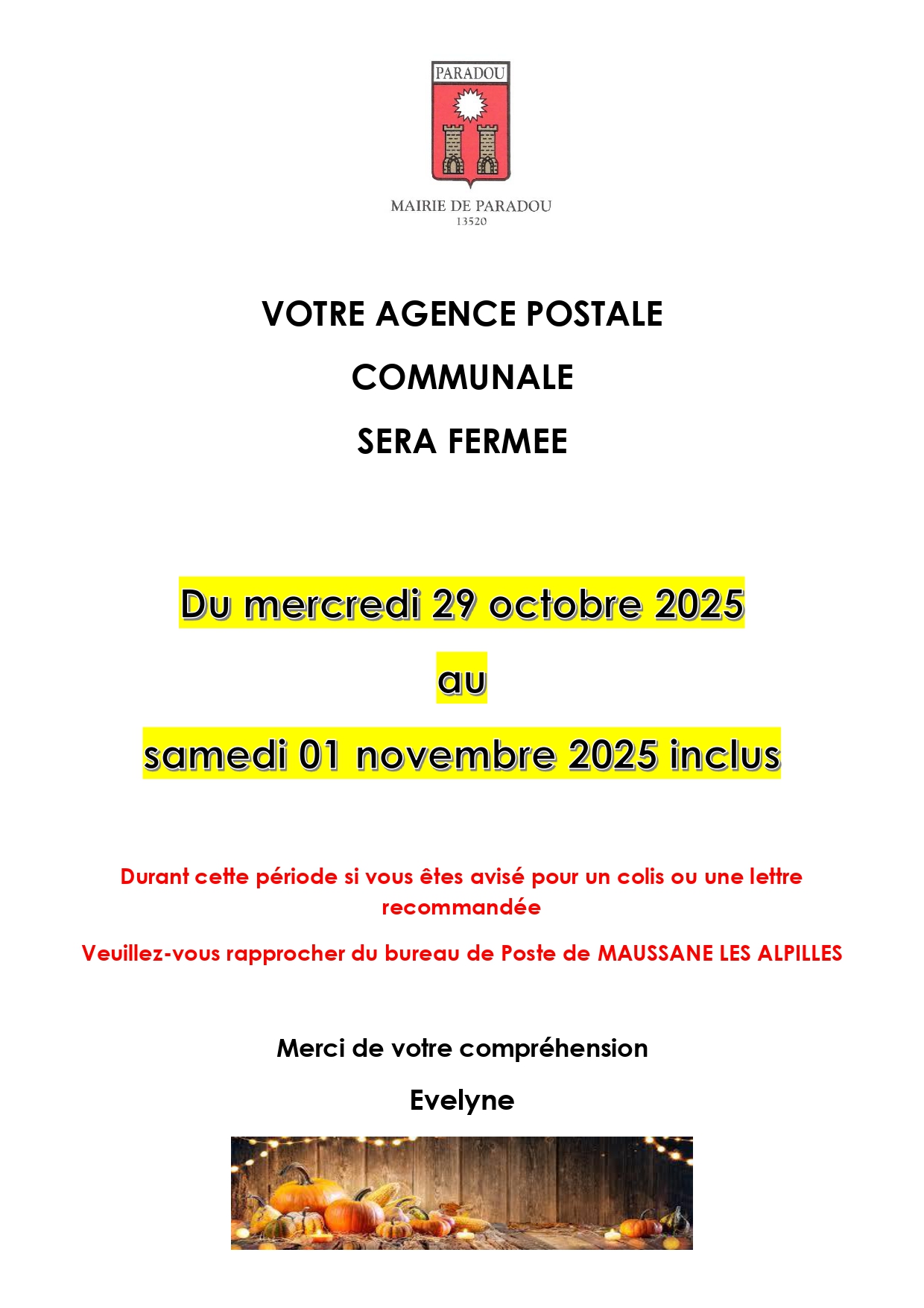 Fermeture du mercredi 29 octobre au samedi 1 er novembre inclus.