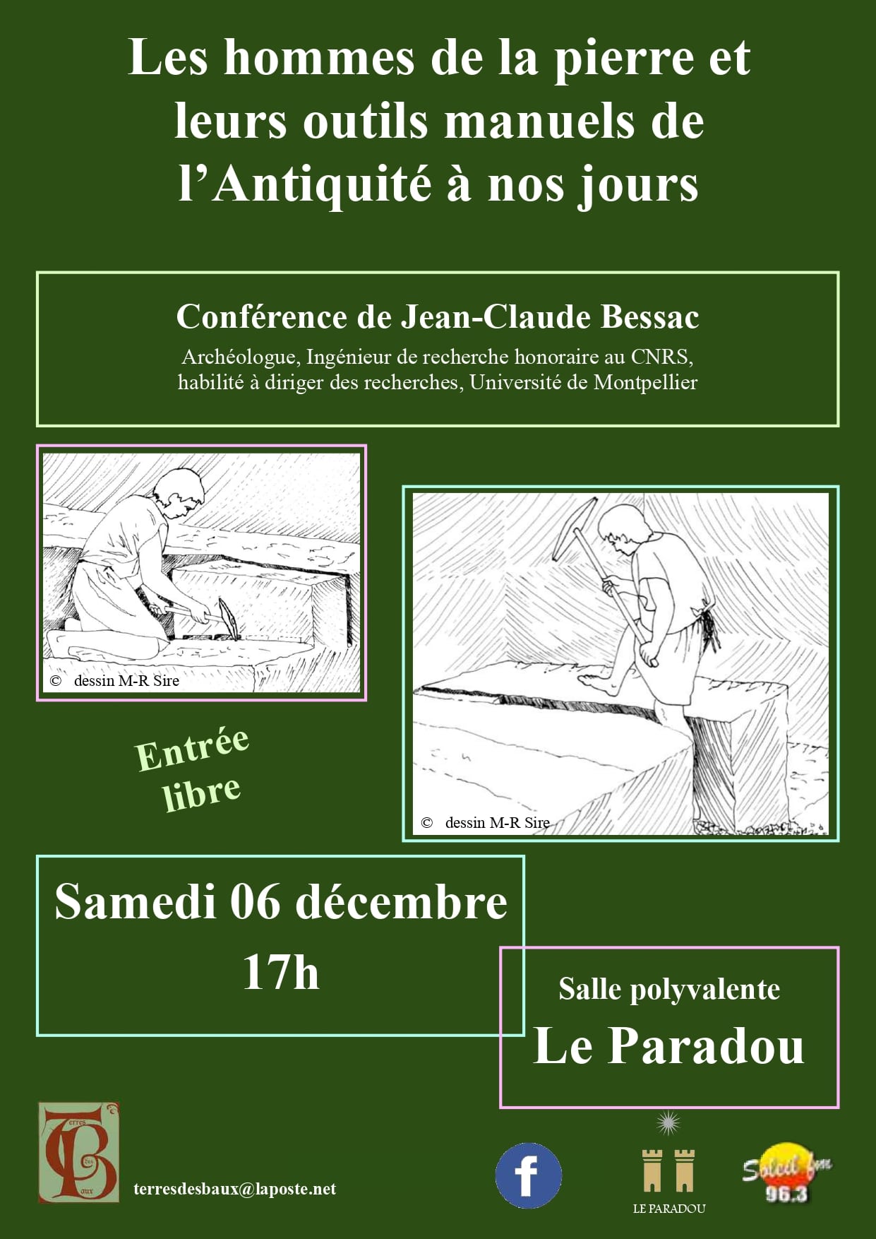 La dernière conférence de l’année aura lieu le samedi 6 décembre à 17h à la salle polyvalente du Paradou. Elle sera donnée par Jean-Claude Bessac, archéologue, ingénieur de recherche honoraire au CNRS, habilité à dirigé des recherches, Université de Montpellier et aura pour sujet :