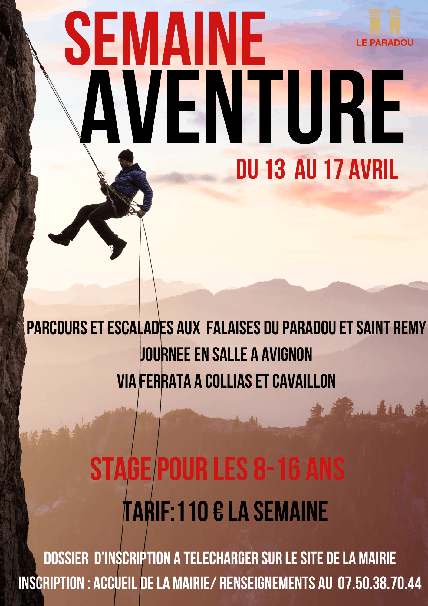 Un stage Aventure est organisé en avril 2026 pour les jeunes de 8 à 16 ans.